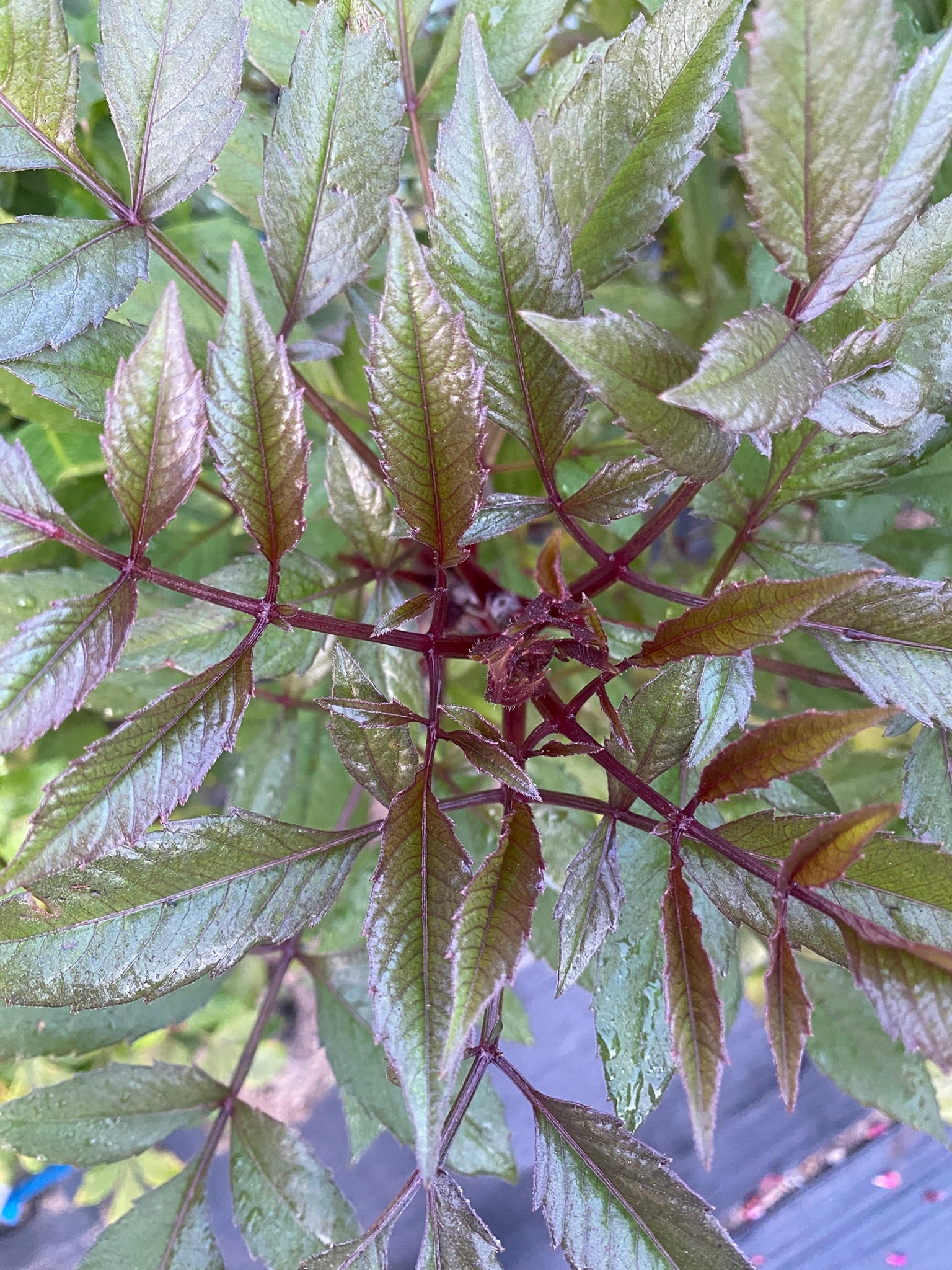 Black Jack is a semi cactus dahlia producing dramatic dark red blooms with elongated, partially rolled petals that give each flower a bold, spiky elegance and strong visual movement. Mine did not quite bloom before frost, but because the foliage is so unique, I have no doubt about its trueness to variety.