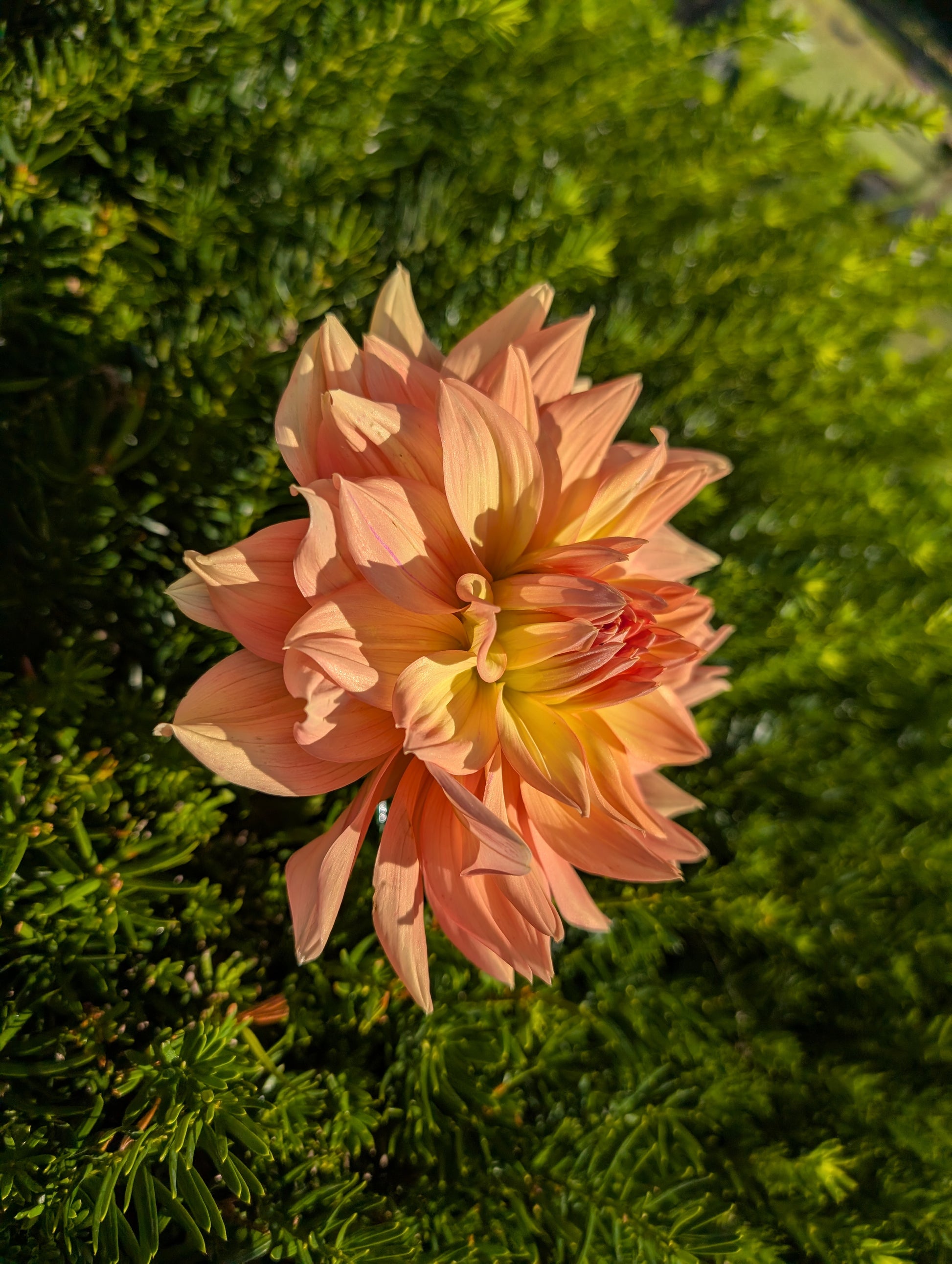 Honeymoon is a cheerful, soft yellow and peach blend informal decorative dahlia. Its gently twisted petals and relaxed bloom form create a whimsical, romantic appeal perfect for garden borders and mixed bouquets.