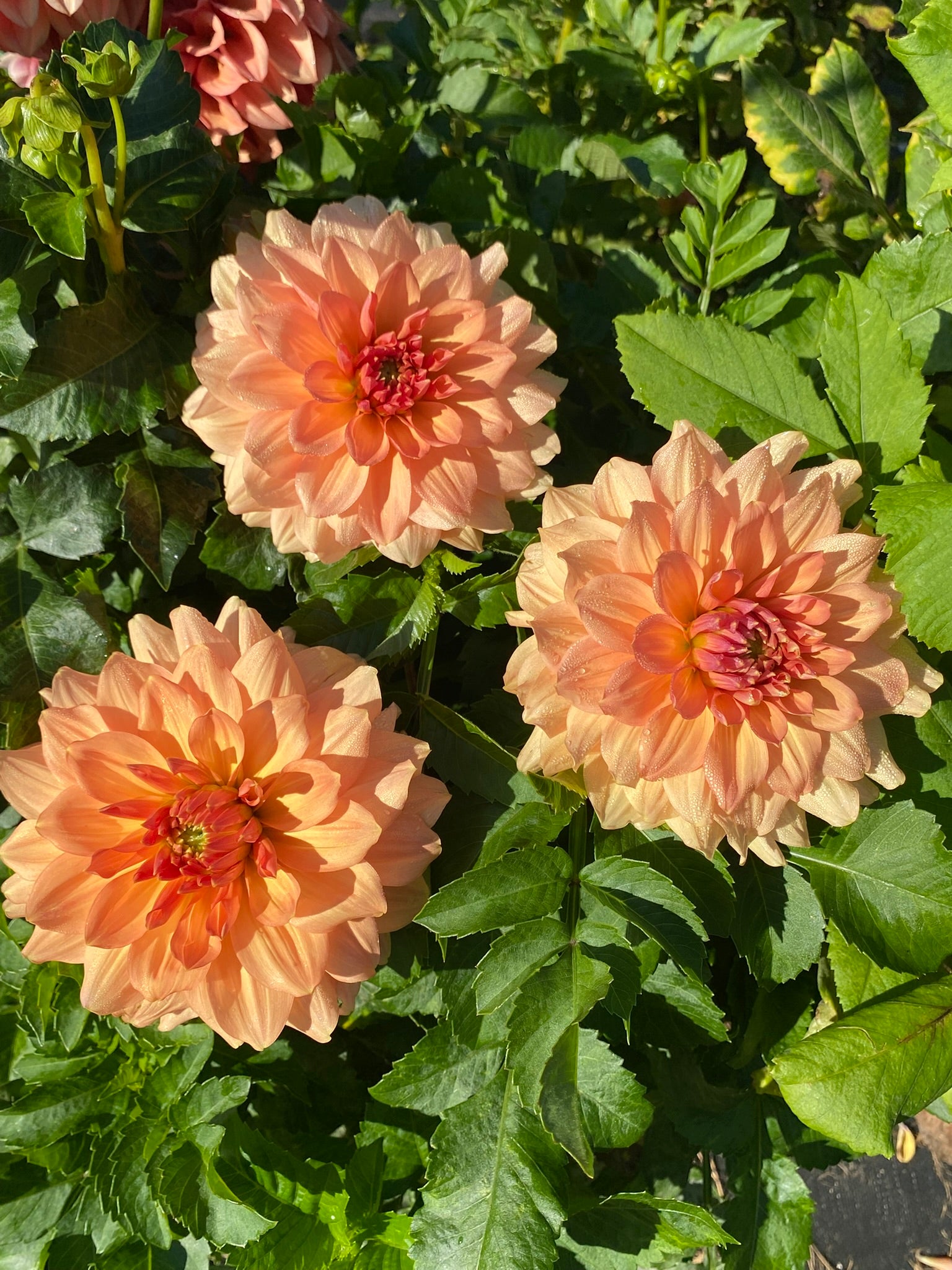 Peach Bud is a soft, glowing peach formal decorative dahlia with smooth, symmetrical petals and a warm, inviting color palette. The blooms have a refined, polished look that brings gentle elegance to both garden beds and floral designs. A personal favorite.