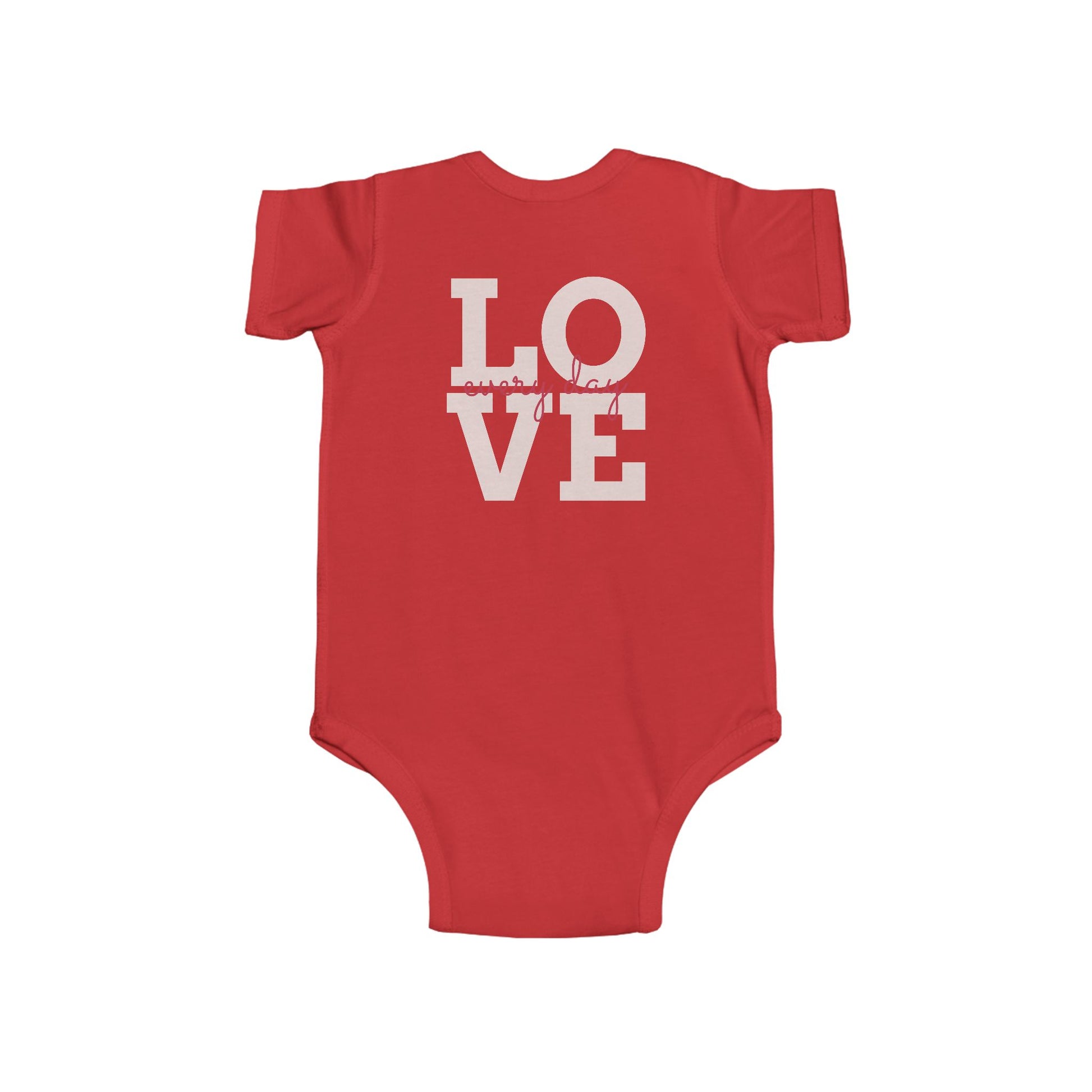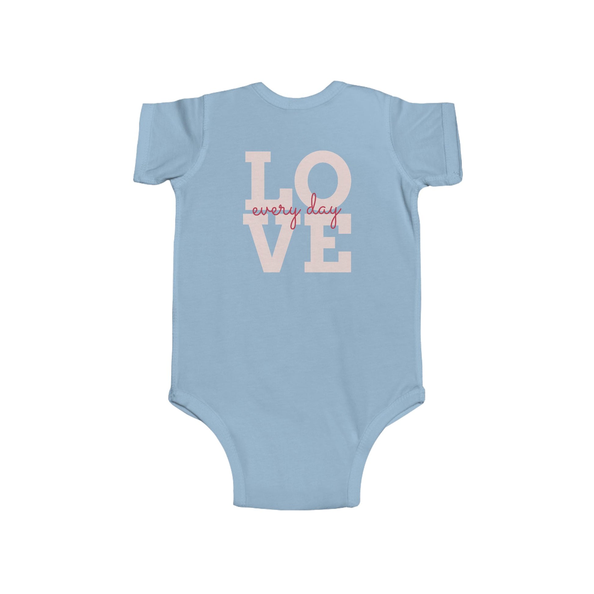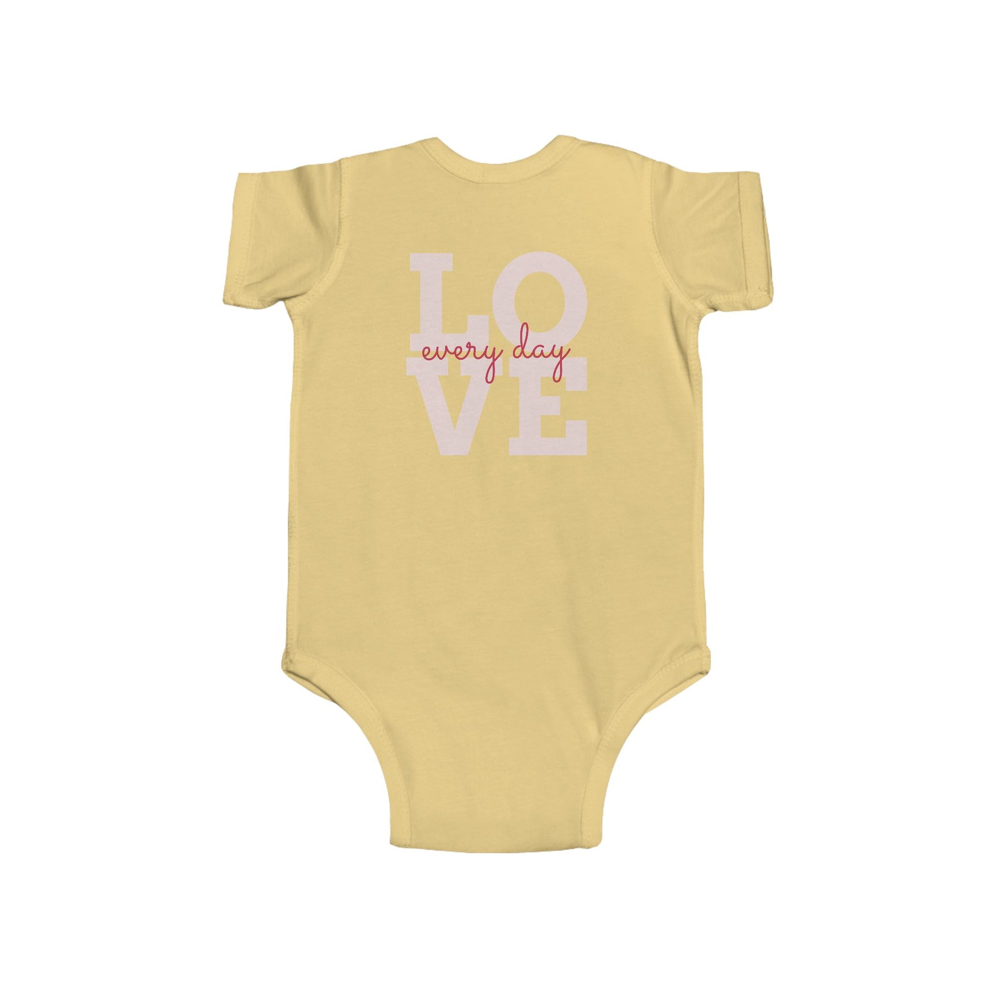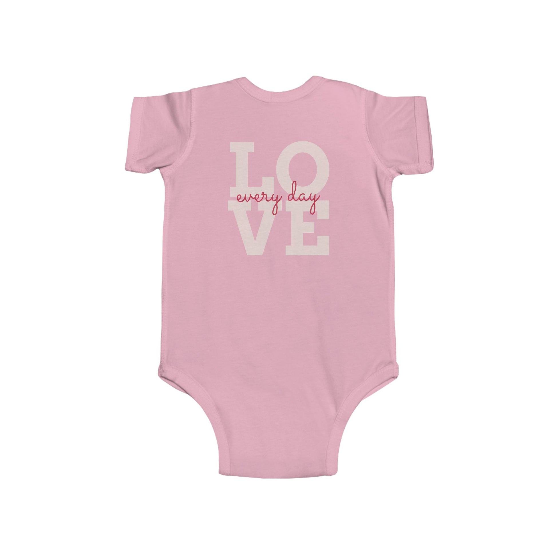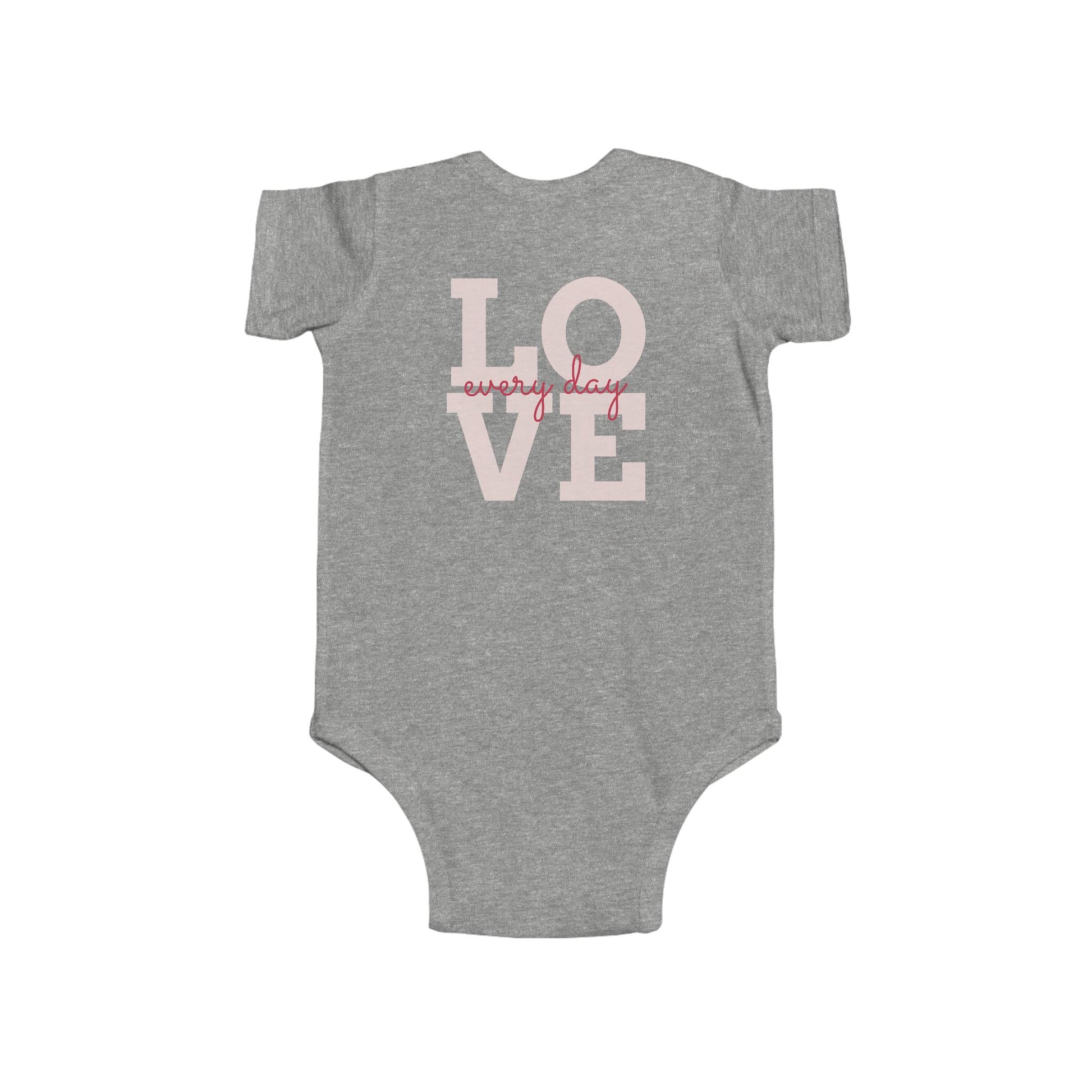 Radiantly Beautiful Dahlia Baby Onesie Love Every Day Design on the Back