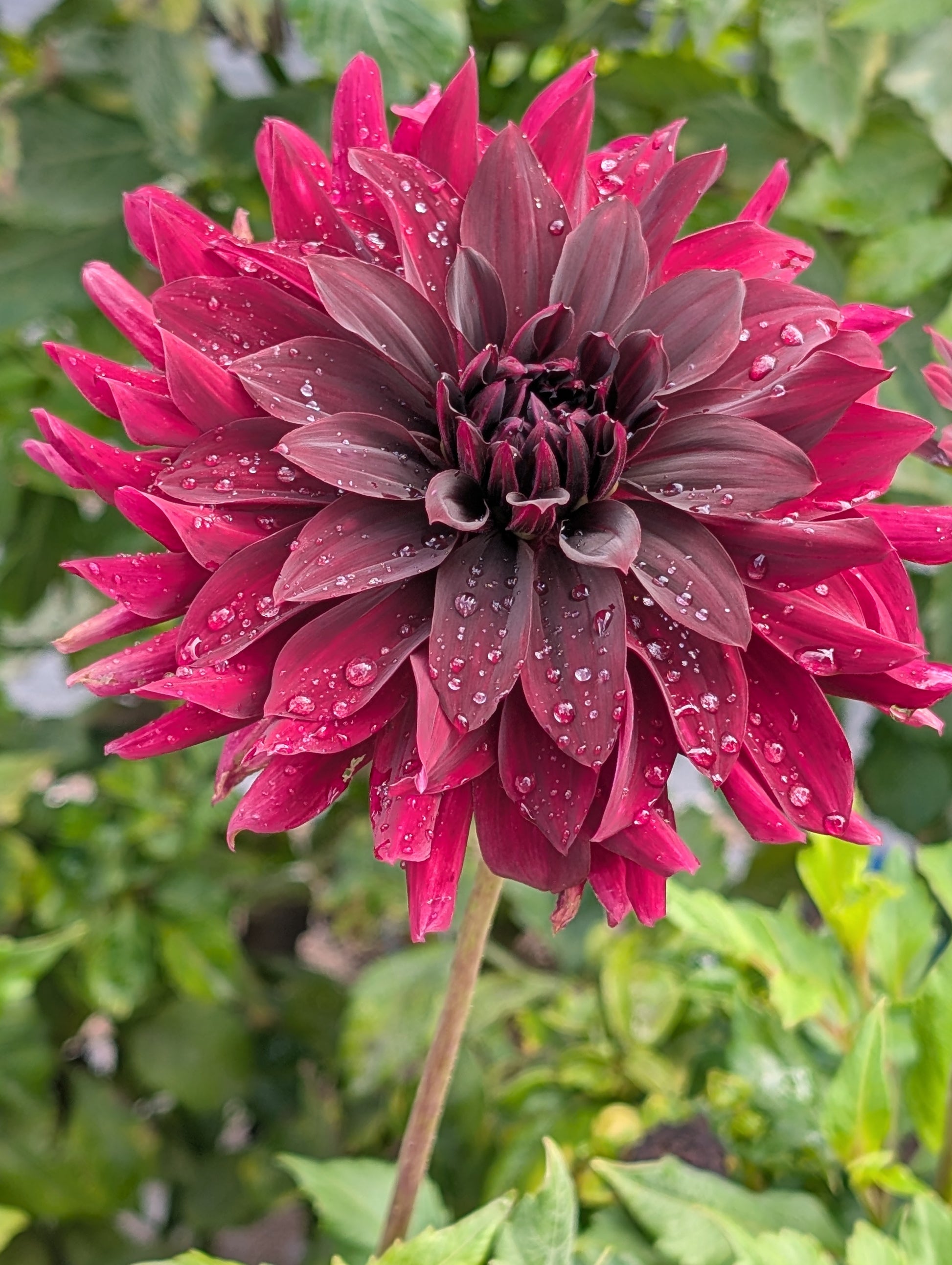 Rip City is a striking informal decorative dahlia showcasing rich, dark red blooms with softly irregular, layered petals that give each flower depth and movement. The dramatic coloration paired with its relaxed form creates a bold yet organic garden presence. Perfect for moody bouquets and fall themes!